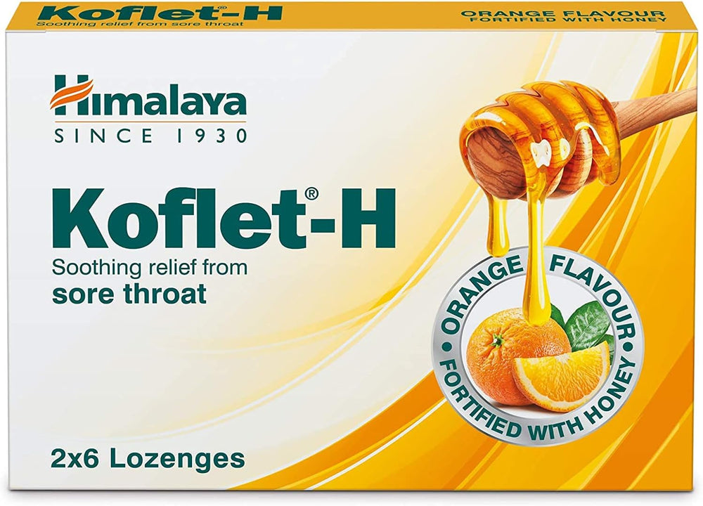 Himalaya Koflet-H Lozenges Orange are herbal throat-soothing lozenges formulated to relieve irritation, soreness, and dry cough. Infused with traditional herbs and refreshing orange flavor, they help ease throat discomfort while promoting respiratory wellness. Convenient and portable, they are ideal for quick relief anytime, anywhere.