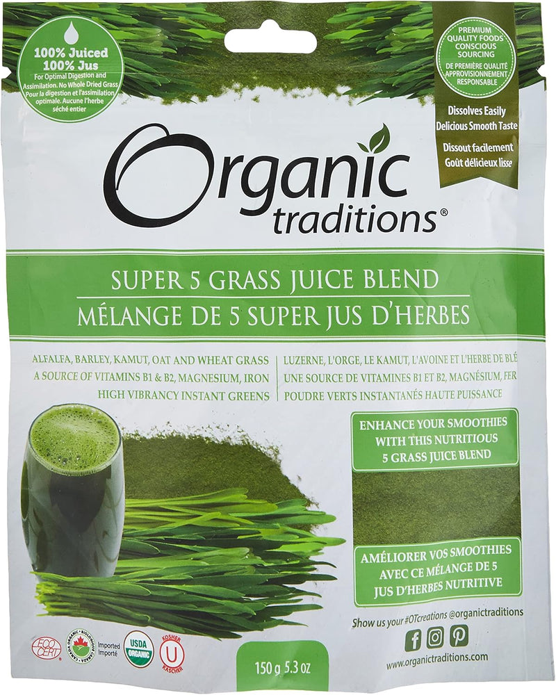 Organic Traditions Super 5 Grass Juice Blend, 150 Gm