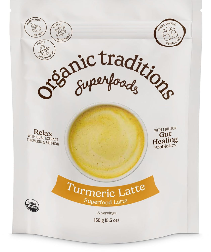 Organic Traditions Turmeric Latte W/Safron & Probiotics, 150 Gm