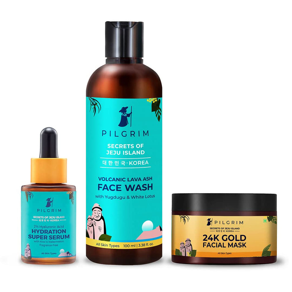 Pilgrim 24K Gold Home Facial Therapy for Smoothening & Glowing Combo | 2% Hyaluronic Acid Hydration Super Serum 30ml | Mild Cleansing Face Wash 100ml | 24K Gold Facial Mask 50gm |Facial Kit for Women works really well, I have seen results within 2 week