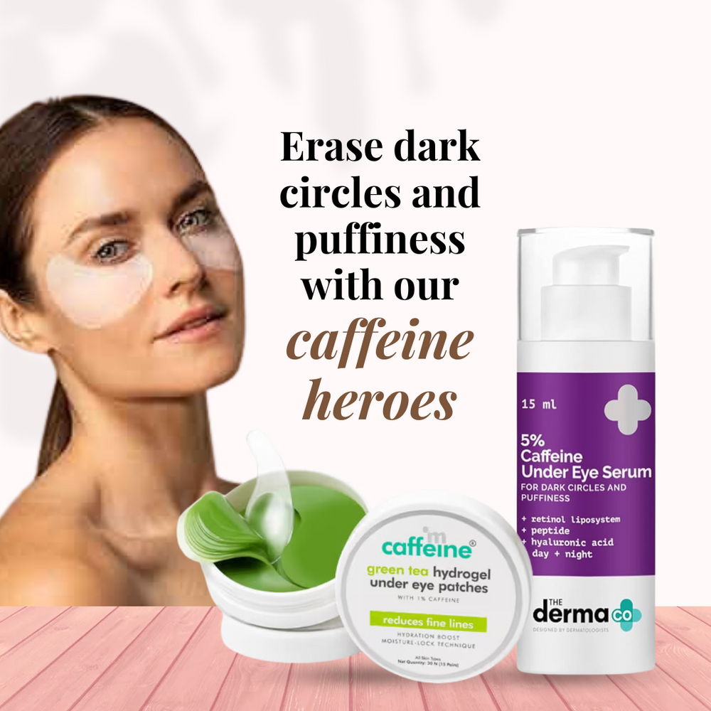 Under Eye Care- THE DERMA CO 5% Caffeine serum 15 ml and MCaffeine Green Tea Hydrogel Under Eye Patches Combo works really well, I have seen results within 2 week