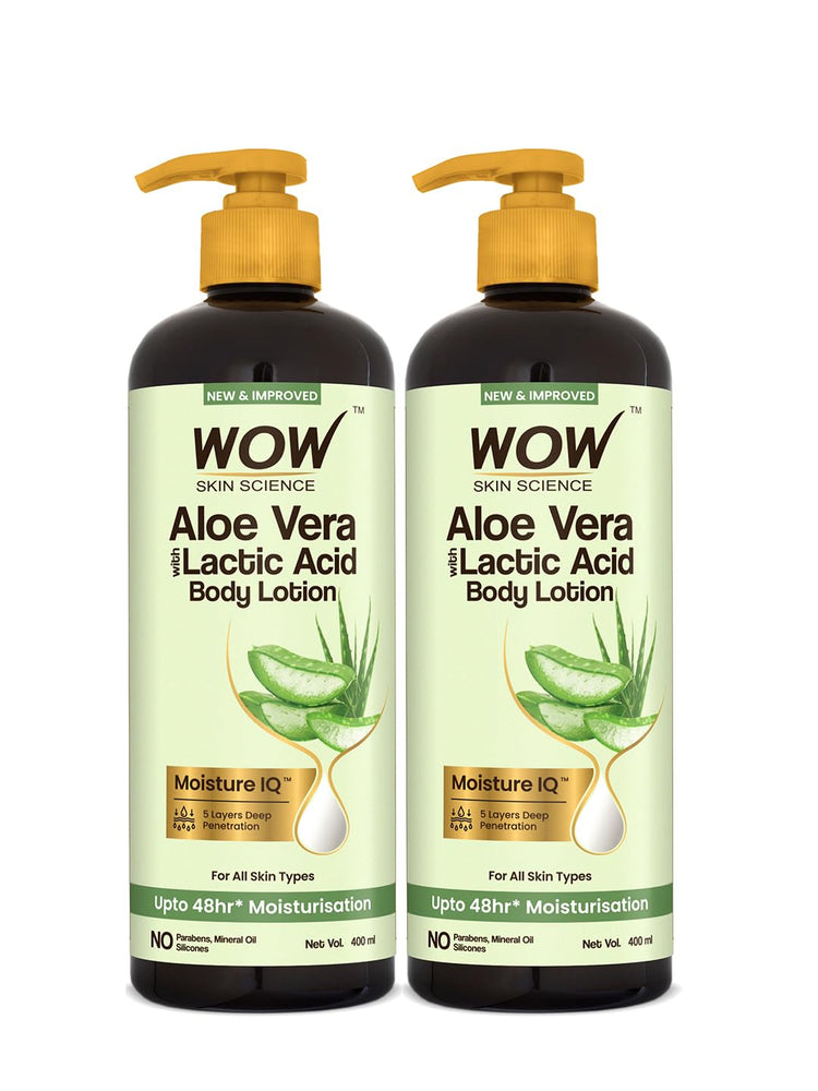 WOW Skin Science Aloe Vera wit Lactic Acid Body Lotion | Ultra Light Hydration | All Skin Type | 400ml | Pack of 2 works really well, I have seen results within 2 week